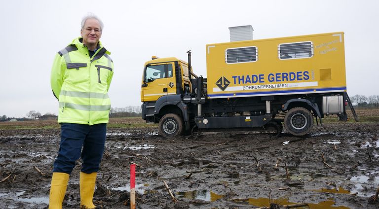Uthwerdum. Auf dem Grundstück der geplanten Zentralklinik in Uthwerdum haben kürzlich die Arbeiten für die Baugrunduntersuchungen begonnen. Rund 100 Proben sollen Aufschluss über die dortigen Bodenverhältnisse geben. Erste Untersuchungsergebnisse vor dem Architektenwettbewerb im vergangenen Jahr hatten grundsätzlich gute Bodenverhältnisse an diesem Standort bestätigt. Vor Ort begleitet Diplom-Ingenieur Hans-Joachim Klüschen von der Schnack Ingenieurgesellschaft aus Hannover die Untersuchungen des Bodens. „Die ersten Bohrungen bestätigen die Erwartungen. Der Boden ist - damit hatten wir bereits im Vorfeld gerechnet - typisch ostfriesisch“, sagt Klüschen. So wurde bei den ersten Bohrpunkten nach wenigen Metern tragfähiger Grund vorgefunden. „Die ersten Meter sind immer zu weich“, erklärt der Ingenieur. Geologisch gesehen, erzählt Klüschen, finden sich im Uthwerdumer Boden neben Schwemmablagerungen auch Geschiebeböden (durch die Gletscher der Eiszeit umgelagerte Böden) wieder, die von eiszeitlichen Sanden unterlagert werden.