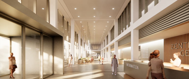 Der architektonische Aufbau der Zentralklinik orientiert sich an den Anforderungen einer effizienten Betriebsorganisation.